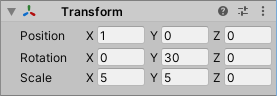 플레이 버튼을 눌러보면 Rotation.y가 30이 되는걸 볼 수 있다.