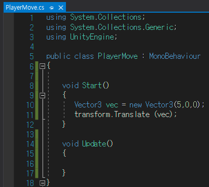 transform.position은 정해진 좌표로 이동한다. 이번에는 만큼 이동하는 걸로 보자.