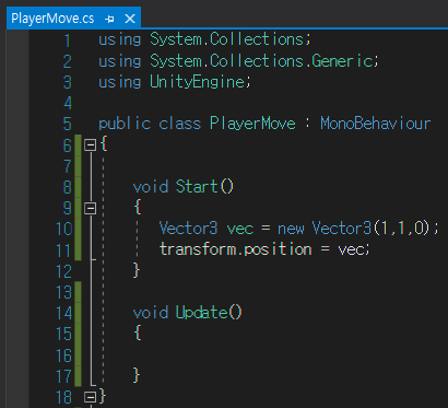 트랜스폼 포지션에 값을 넣어주려면 새로운 벡터값을 생성하고 넣어 주어야한다.