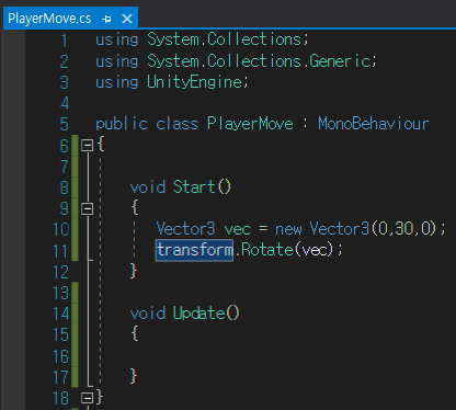 트랜스폼.회전 (백터이름);