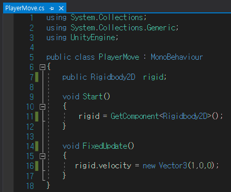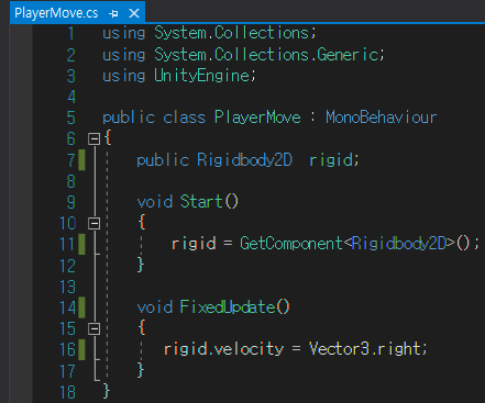* 여기에서 물리적인 속성을 제어할때는 FixedUpdate에 명령어를 입력하는 것이 국룰이다.