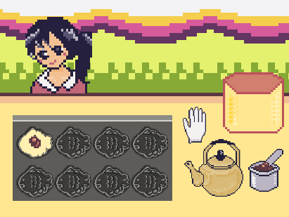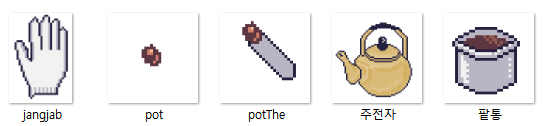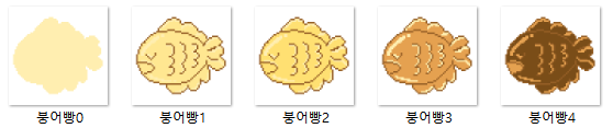 유튜브에서 붕어빵 만들게 게임을 검색해서 필요한 요소들 리스트를 만들고 도트로 찍어봤어요