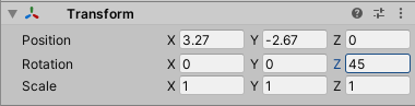jooObject.transform.rotation = Quaternion.Euler(vec); //z축 45도 기울기