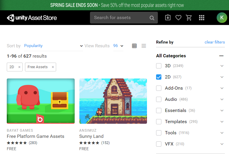 게임을 실행하기 위해서 에셋스토어에서 에셋을 가져와보자.