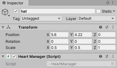 heartanager = GameObject.Find("hat").GetComponent<HeartManager >(); //클래스 초기화